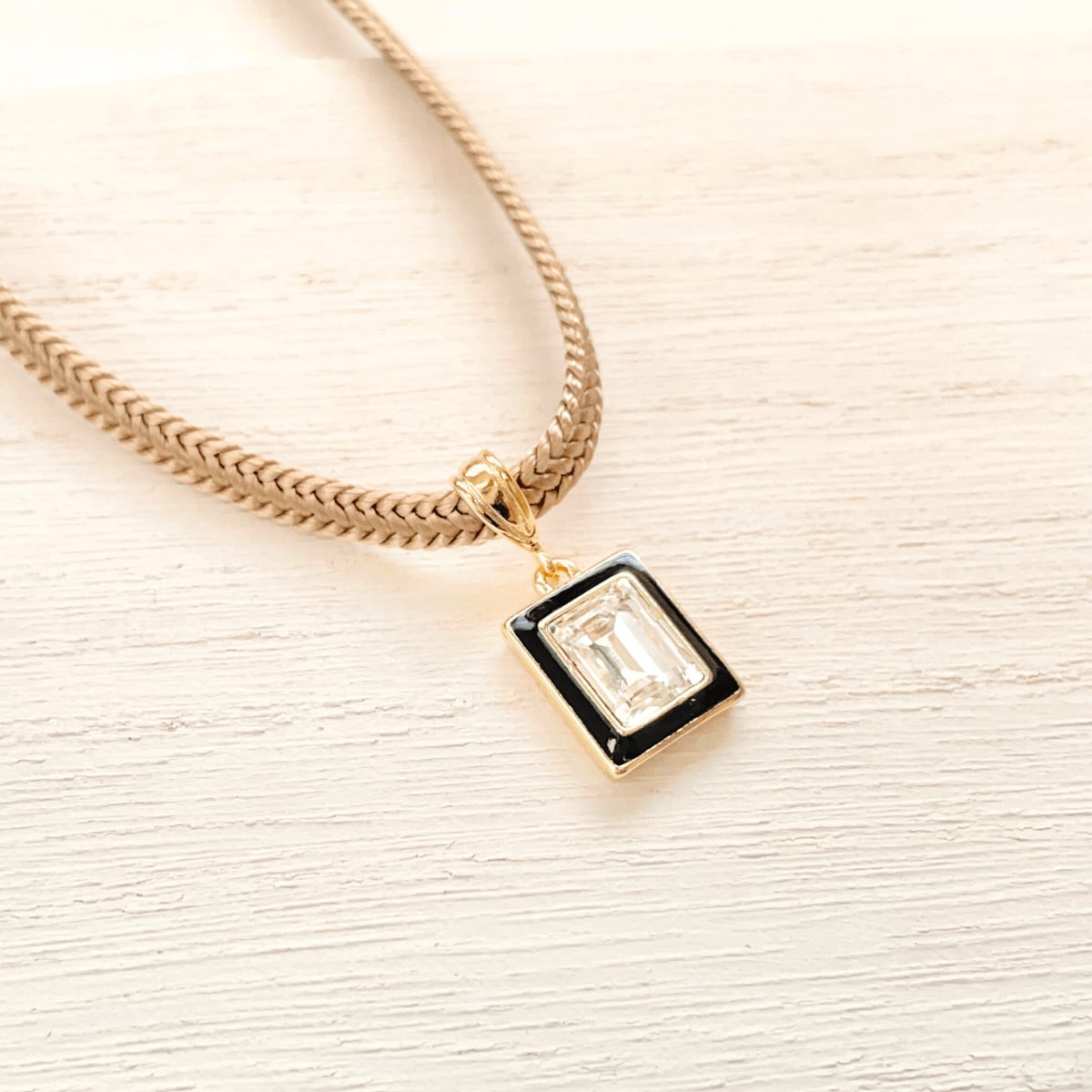 シンプルを極めた王道チョーカー【リボンベージュ&トップ黒】です。