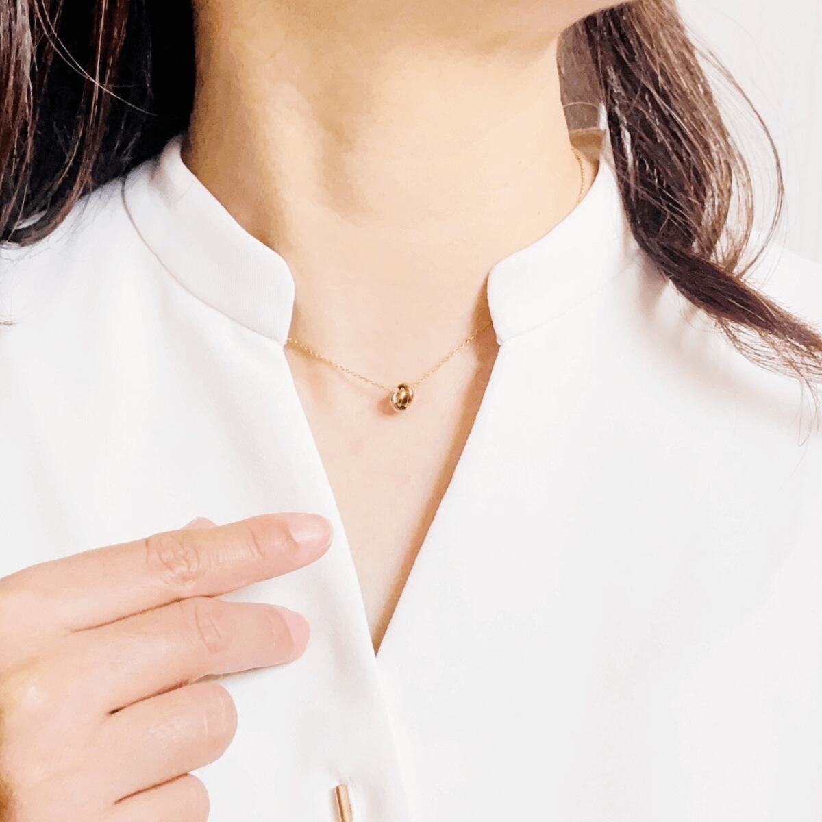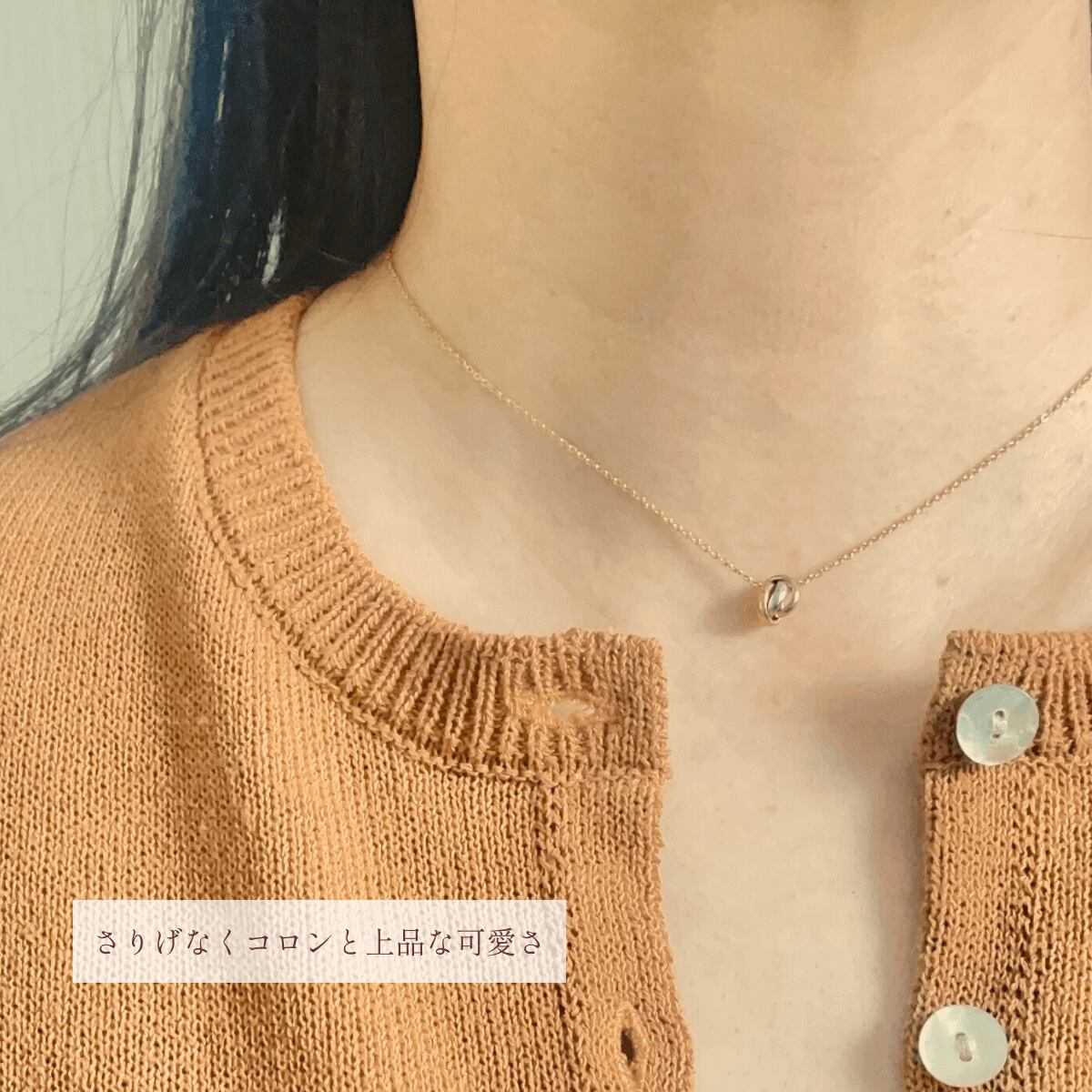 冬には暖かいタートルネックにも合わせていただけます。