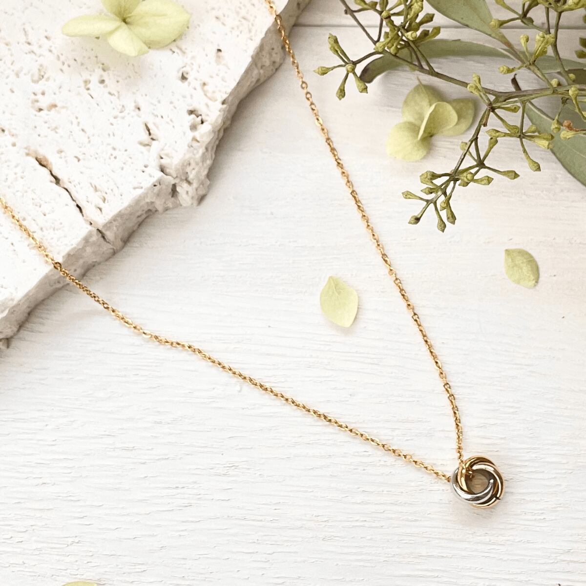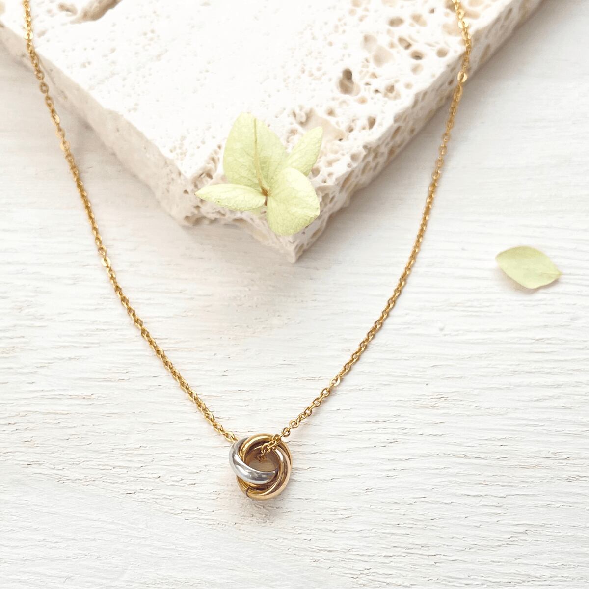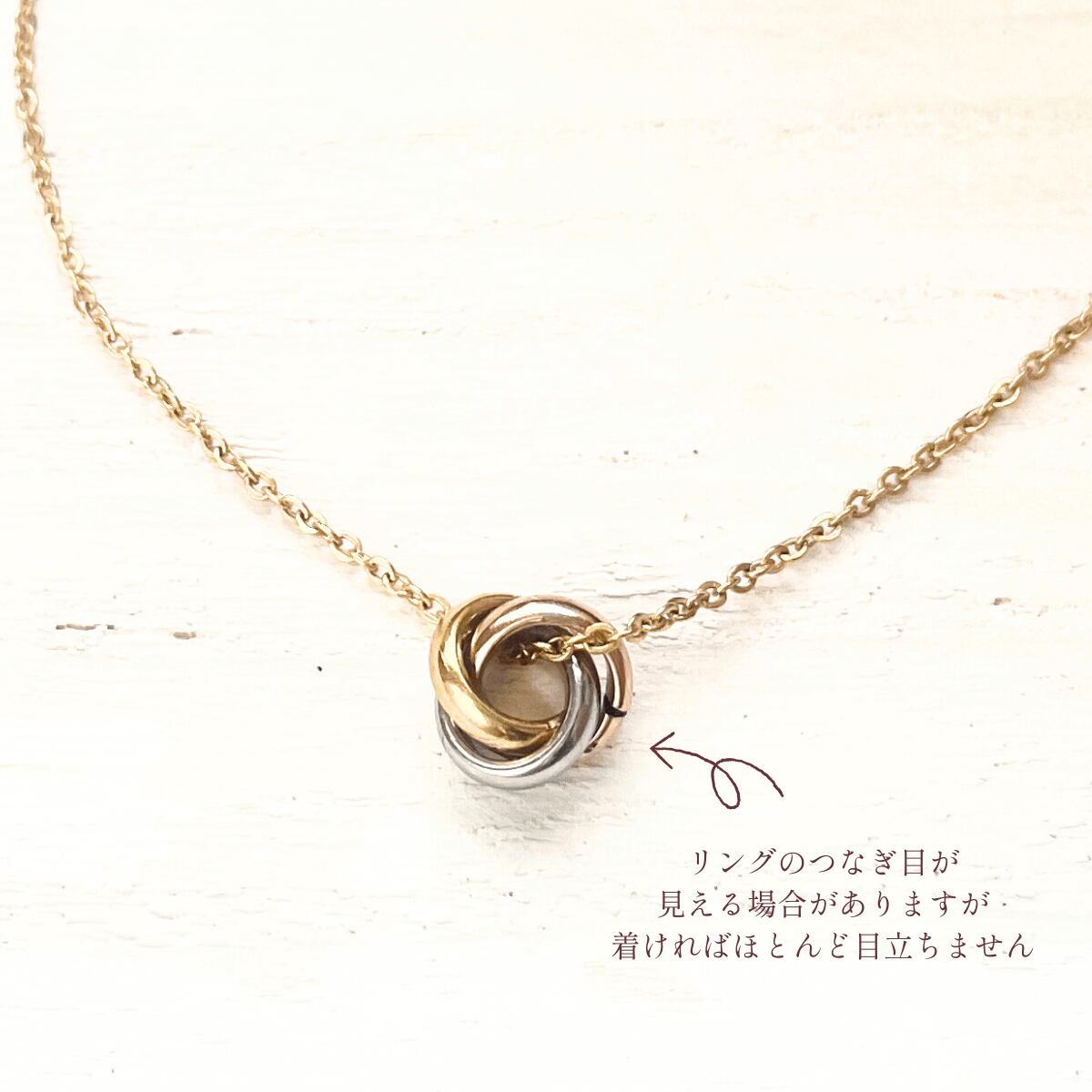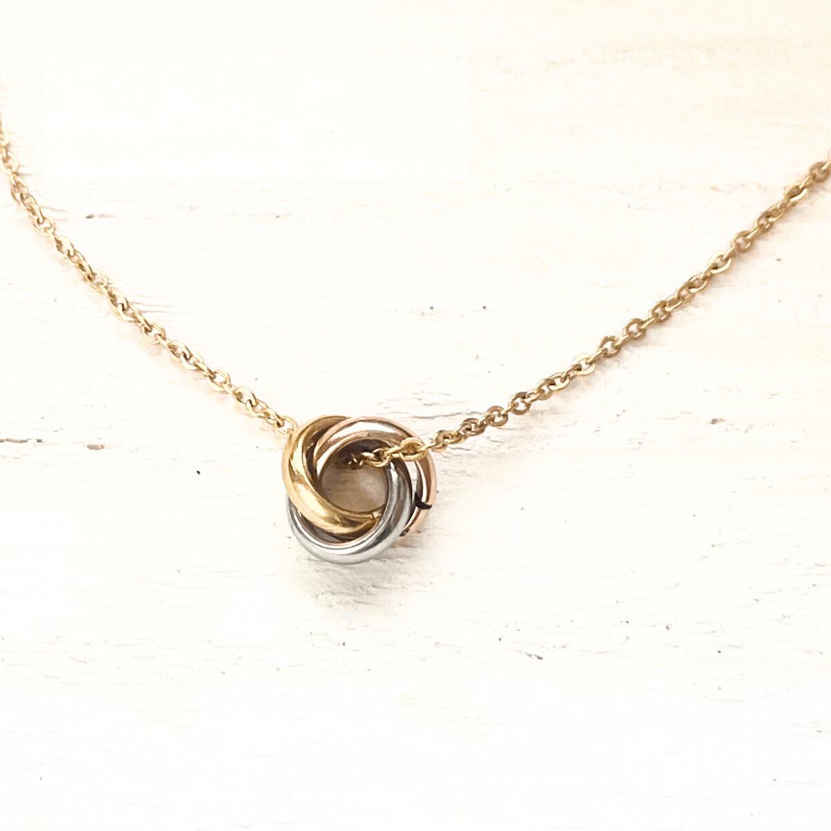 シルバー、ゴールド、ピンクゴールドの3色のリングが重なる