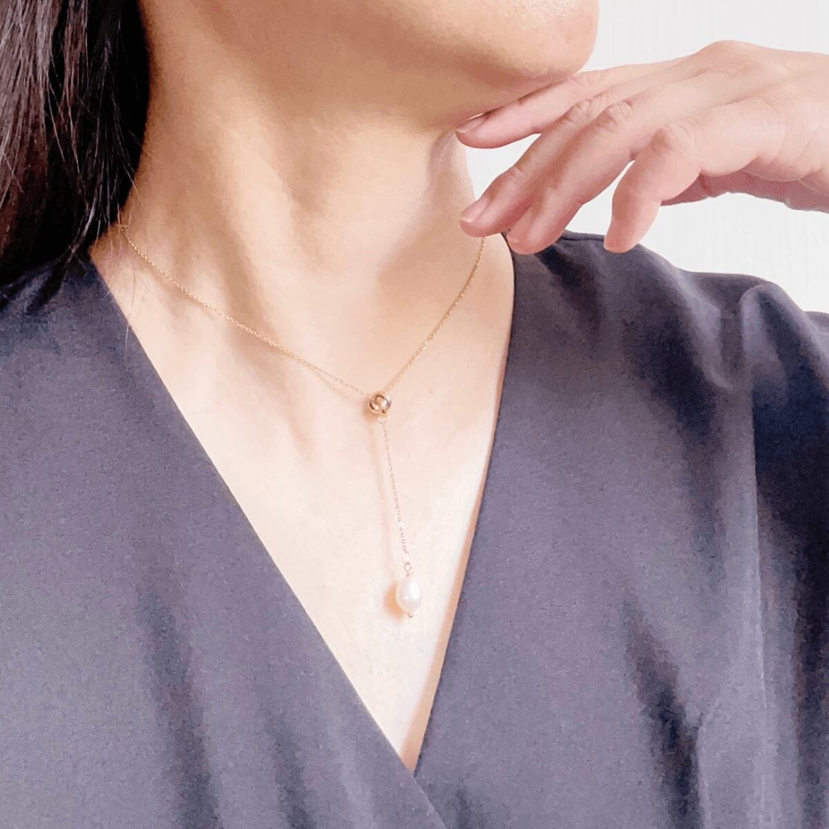 冬には暖かいタートルネックにも合わせていただけます。