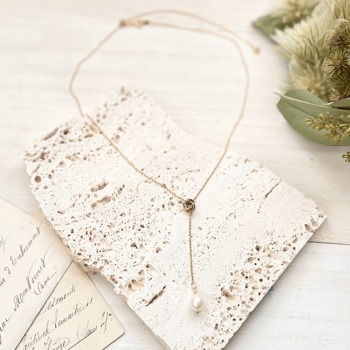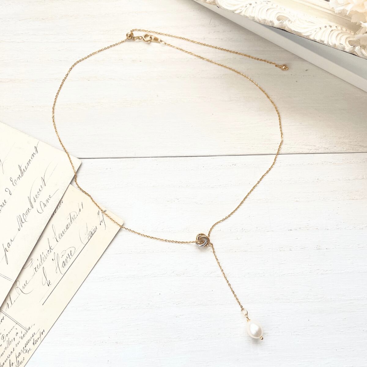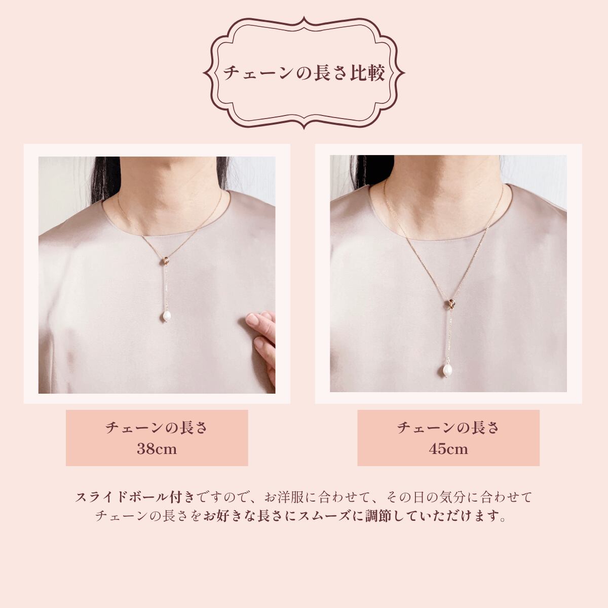 チェーンは50cmとたっぷりした長さをとってお作りしましたので、短め、長め、思うがまま。