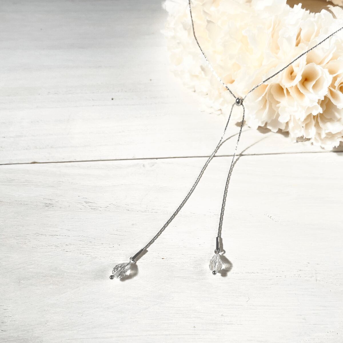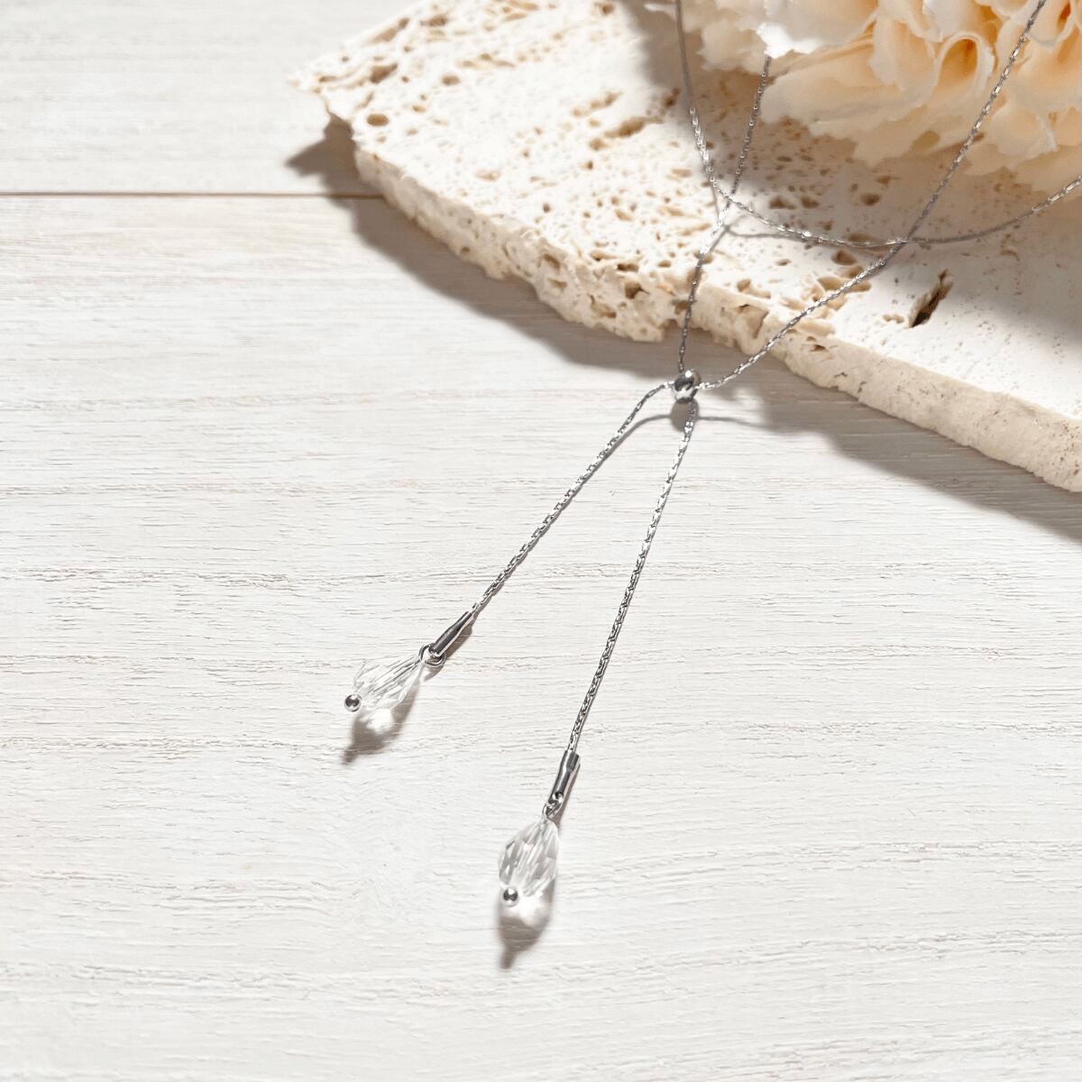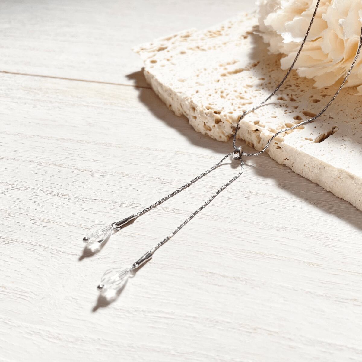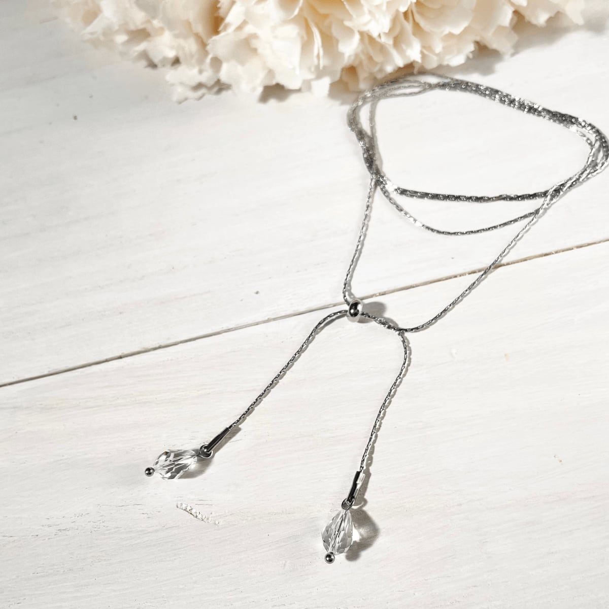 『ストレスフリー&自由自在! 雫クリスタルが輝く ロング チョーカー ネックレス(シルバー)』