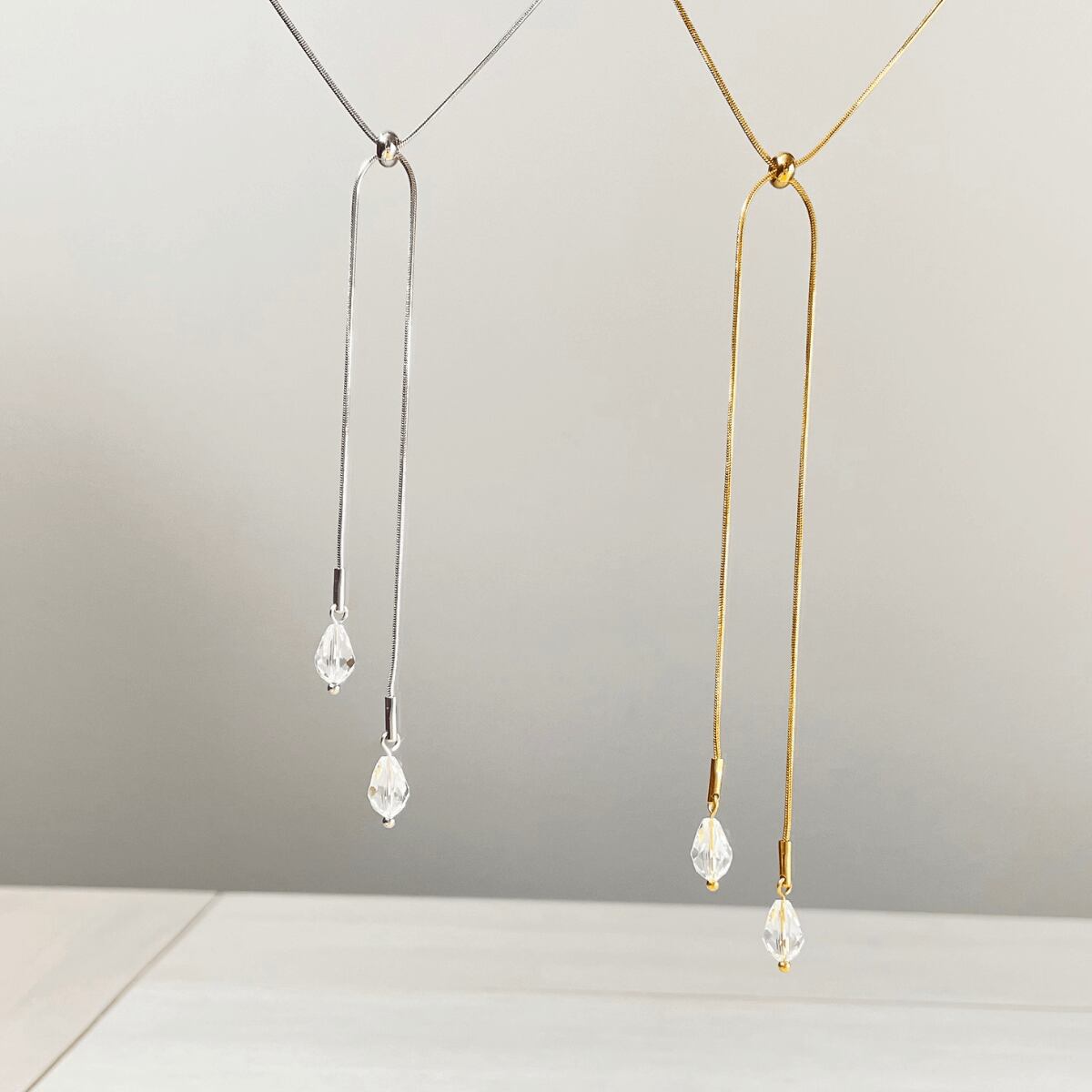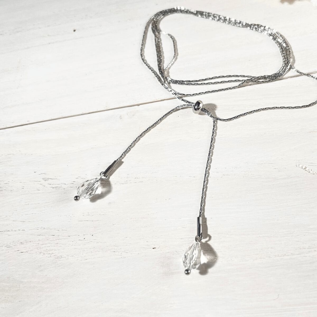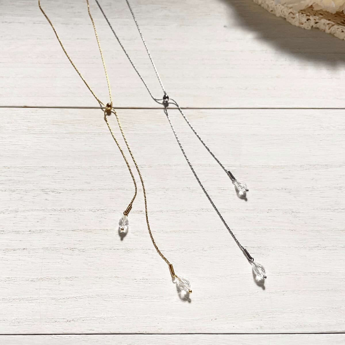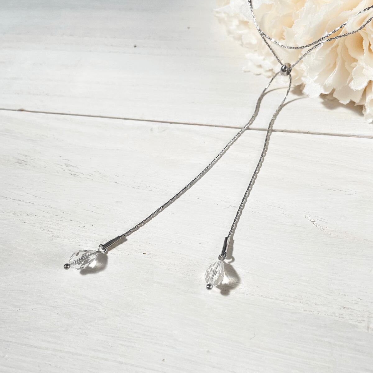 『ストレスフリー&自由自在! 雫クリスタルが輝く ロング チョーカー ネックレス(シルバー)』
