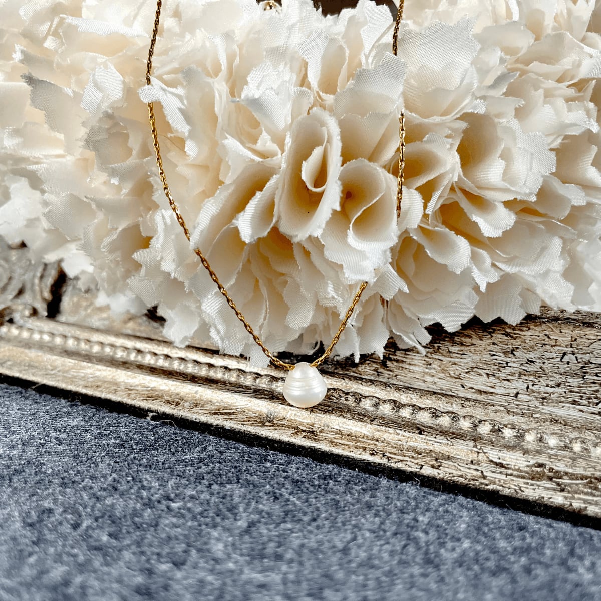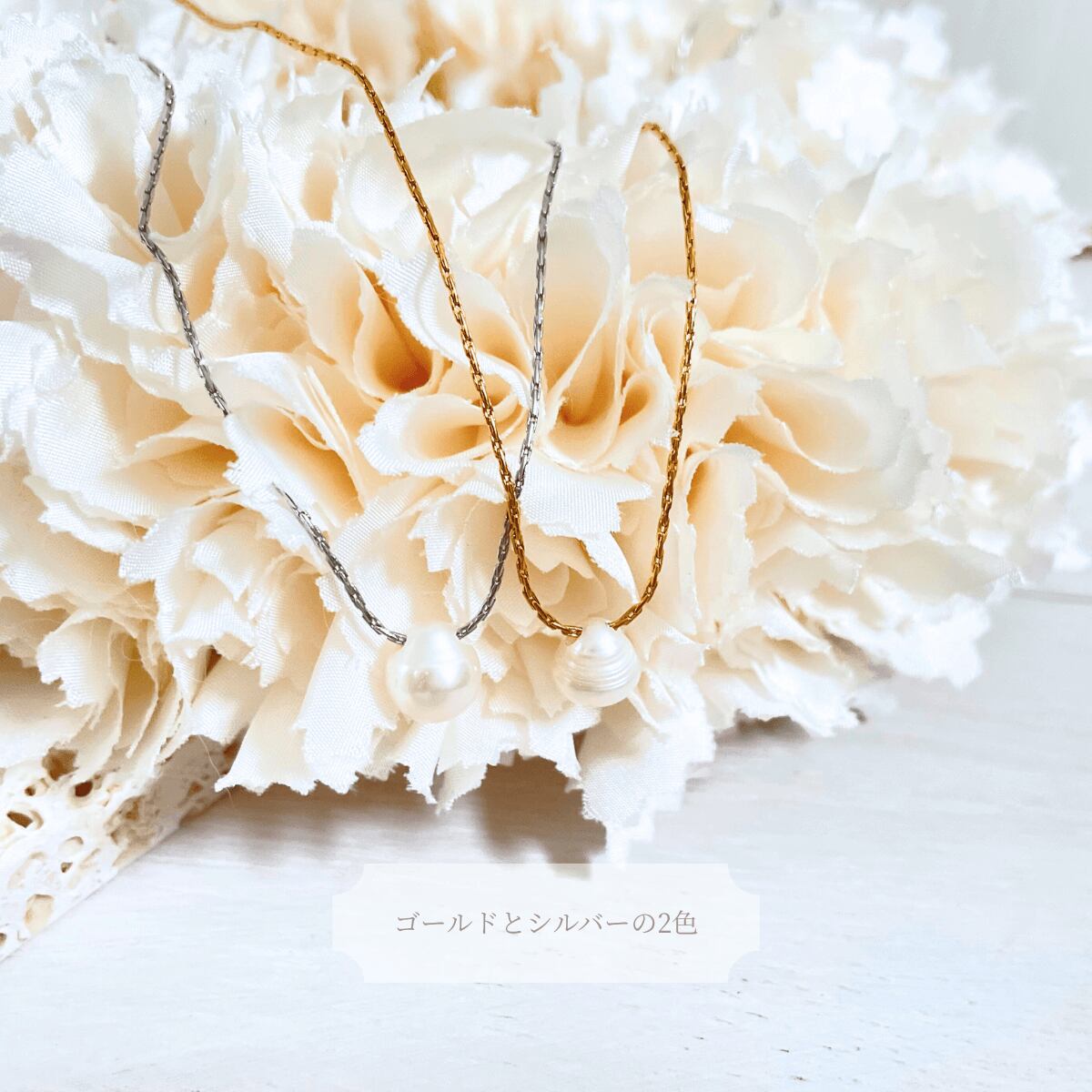 約7~8㎜という大きすぎず小さすぎない、ちょうど良い大きさの淡水真珠に直にチェーンを通しています。