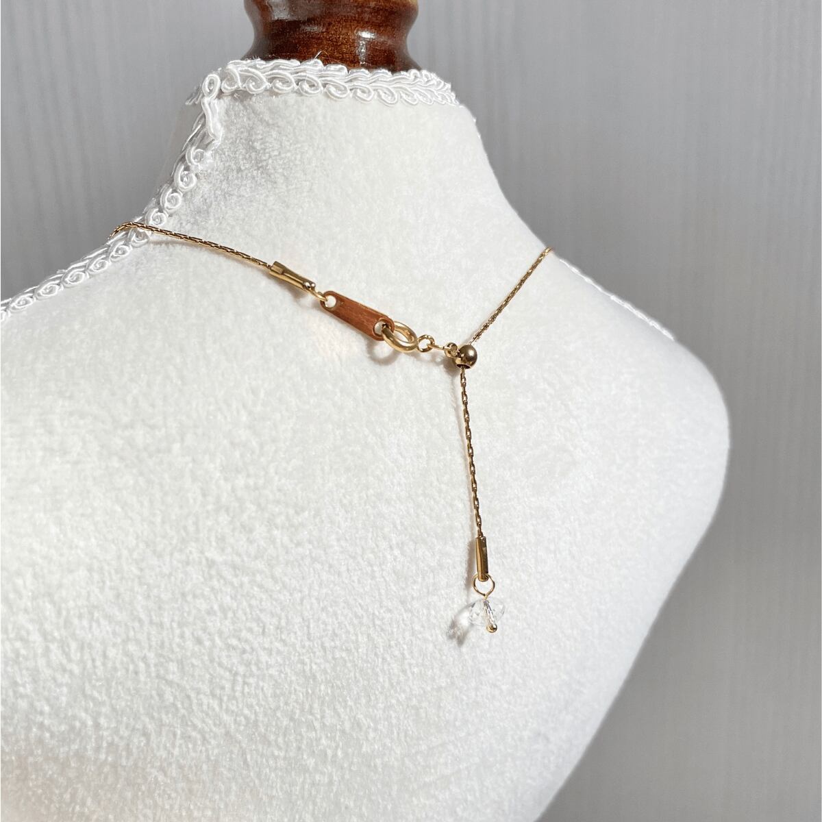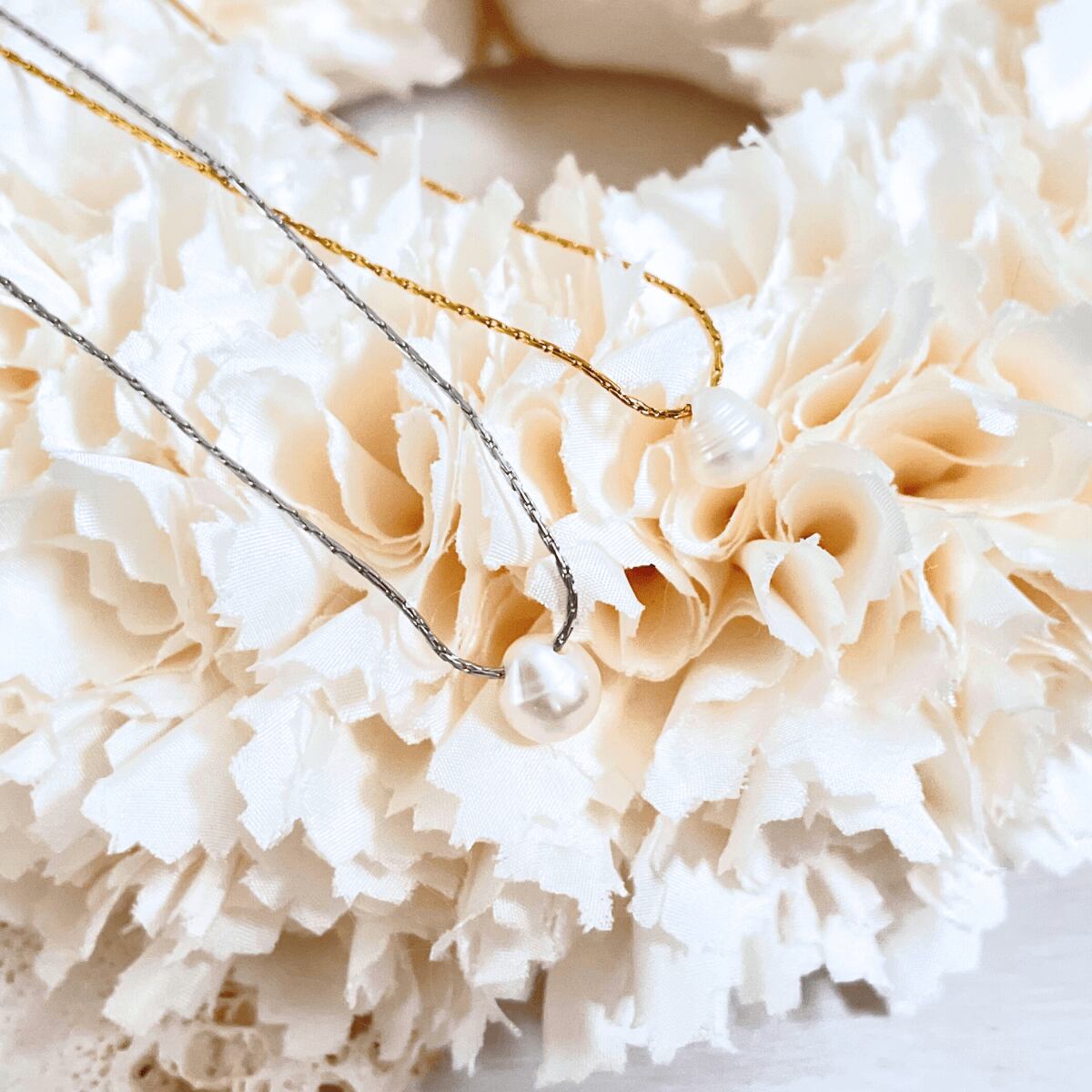 お手持ちのネックレスとの重ね着けもしやすく、より華やか上品に装っていただけます。