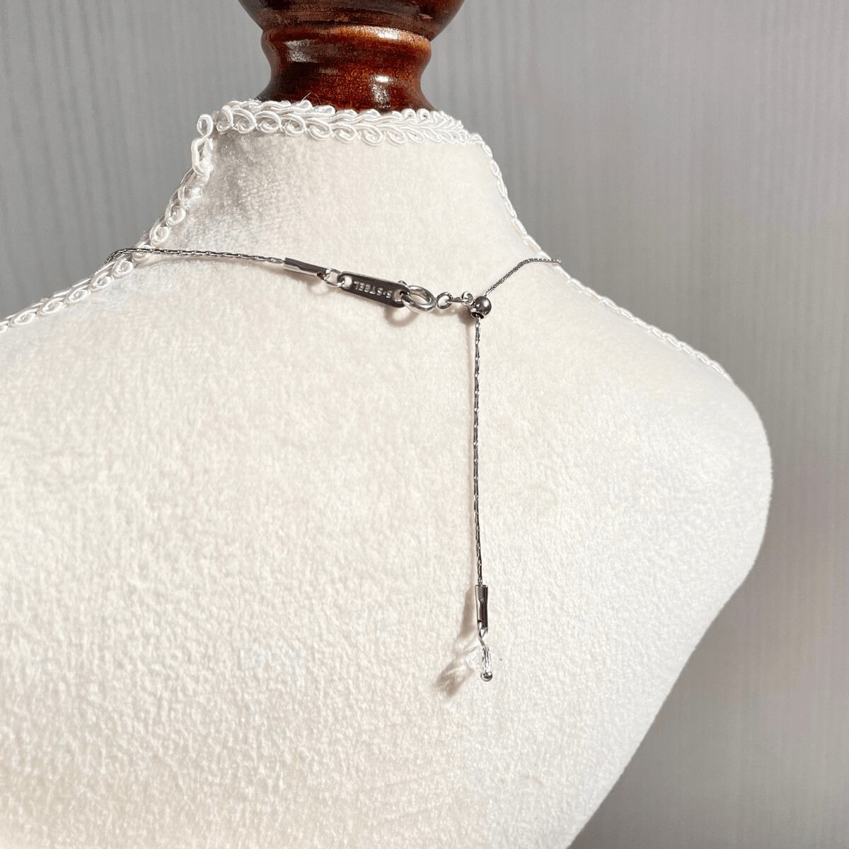 チョーカー ネックレス 金属アレルギー対応 パール 真珠 ステンレス 長さ調節可能 スルー シルバー