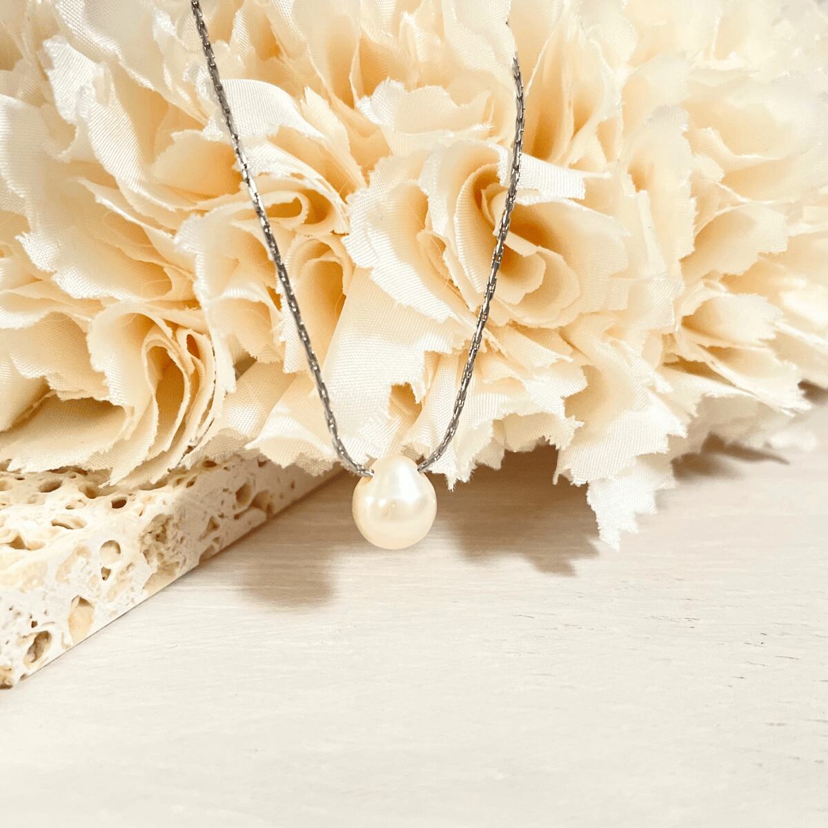 約7~8㎜という大きすぎず小さすぎない、ちょうど良い大きさの淡水真珠に直にチェーンを通しています。