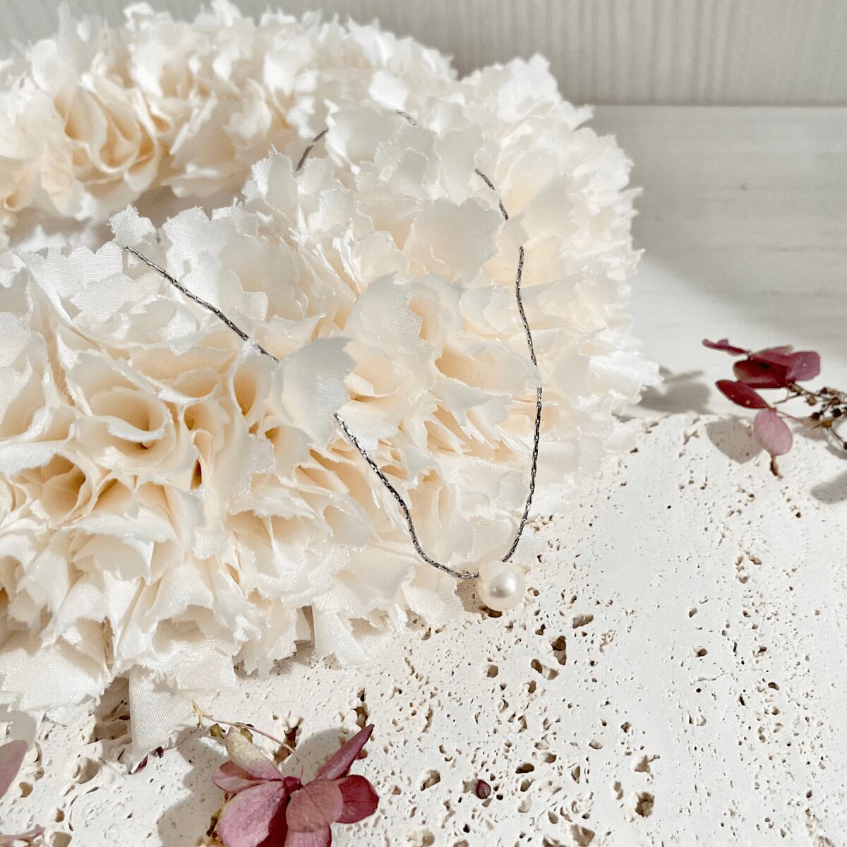 お手持ちのネックレスとの重ね着けもしやすく、より華やか上品に装っていただけます。