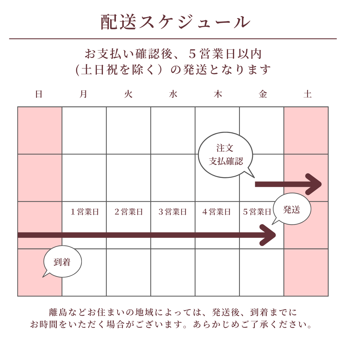 発送は通常、繁忙期およびホリデーシーズンを除き、5日以内(土日祝日を除く)に対応させて頂いております。