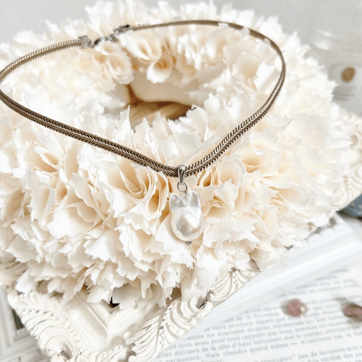 世界に一つ。オイスターバロックパールのリボンチョーカー【ベージュ】