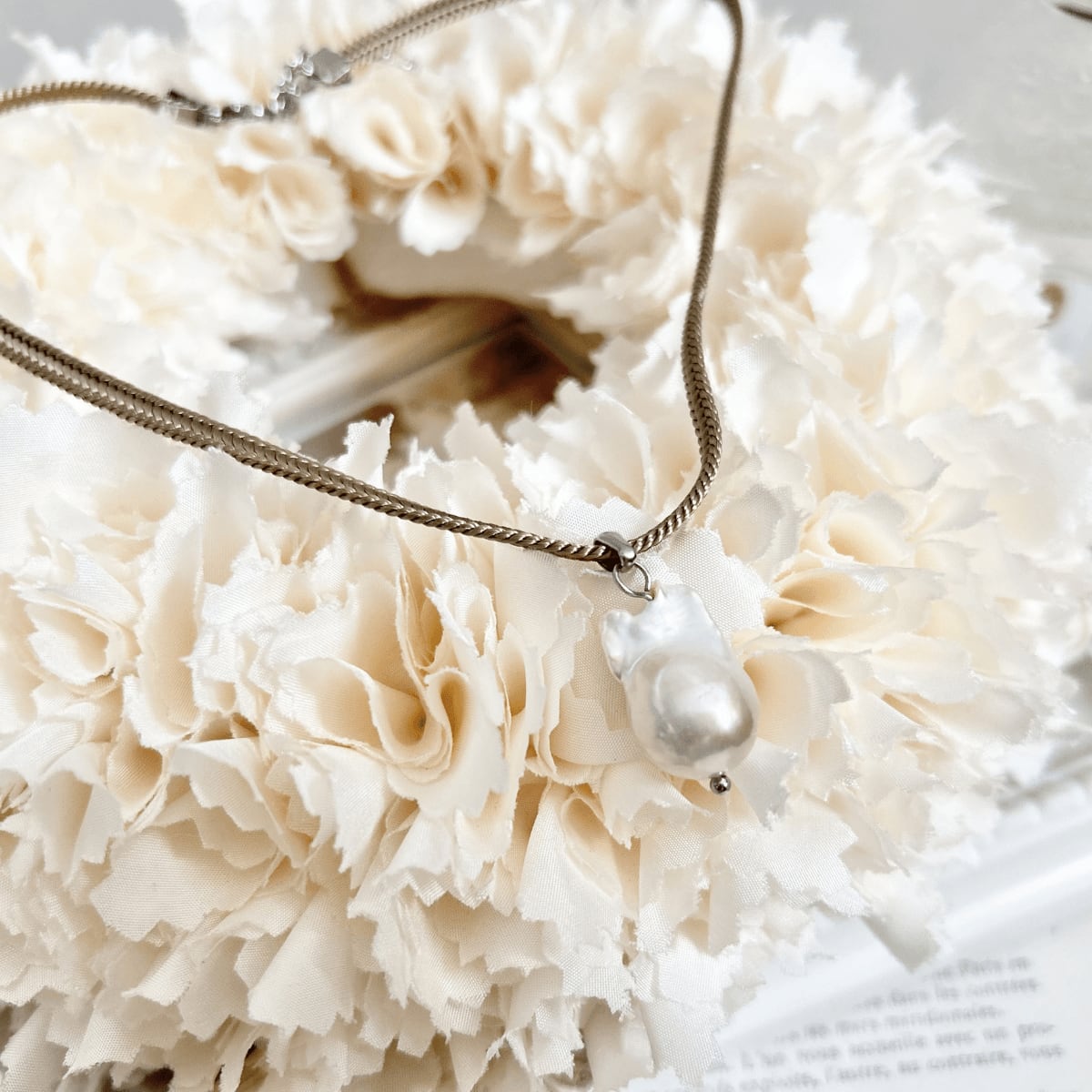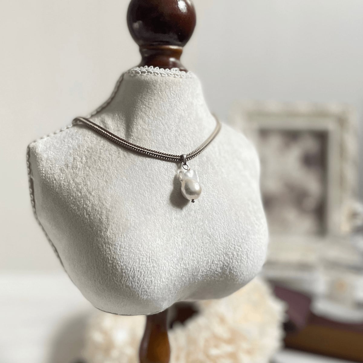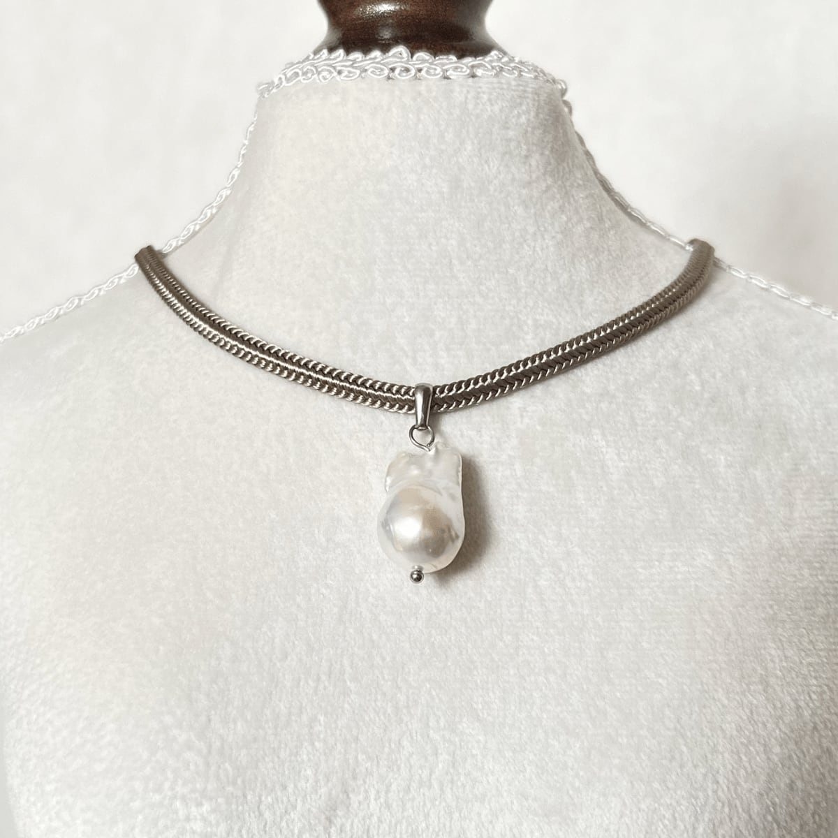 表面がなめらかにデコボコしているバロック真珠だからこそ、その輝きが陰影をともないより目を引きつける魅力的なものとなっています。